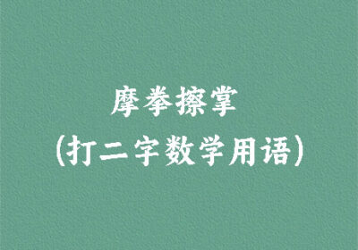 谜面:摩拳擦掌 (打二字数学用语) 谜底:等角 段子乐解释:“角”别指“角斗、打斗”。