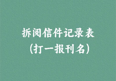 谜面:拆阅信件记录表 (打一报刊名) 谜底:开封日报