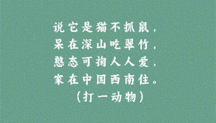 谜面:说它是猫不抓鼠,呆在深山吃翠竹,憨态可掬人人爱,家在中国西南住。 (打一动物) 谜底:大熊猫 段子乐解释:据第三次全国大熊猫野外种群调查,全世界野生大熊猫不足1600只,属于…