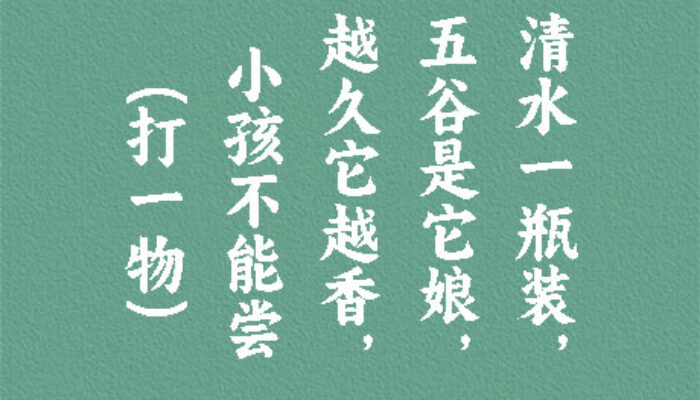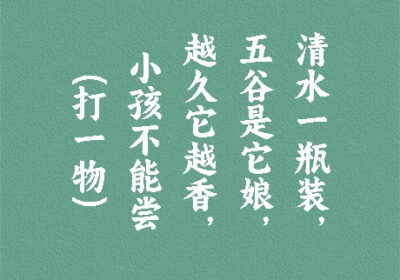 谜面:清水一瓶装,五谷是它娘,越久它越香,小孩不能尝。 (打一物) 谜底:酒 段子乐解释:我国是最早酿酒的国家,早在2000年前就发明了酿酒技术,并不断改进和完善,现在已发展到能生…