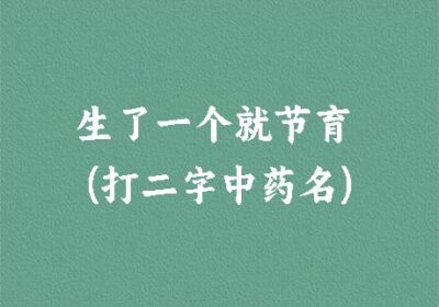 谜面:生了一个就节育 (打二字中药名) 谜底:杜仲 段子乐解释:伯仲叔季,是家里兄弟姐妹的排行顺序,“仲”排第二,生了一个就节育的话,老二就没有出头之日了。“杜”,指杜绝。
