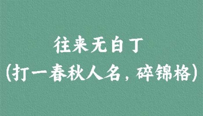 谜面:半部春秋重复看 (打二字北宋人名) 谜底:秦观 段子乐解释:“春秋”二字各取一半,组成“秦”字;“观”字拆分为“又见”,与“重复看”相扣。