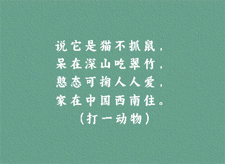 谜面:说它是猫不抓鼠,呆在深山吃翠竹,憨态可掬人人爱,家在中国西南住。 (打一动物) 谜底:大熊猫 段子乐解释:据第三次全国大熊猫野外种群调查,全世界野生大熊猫不足1600只,属于中国国家一级保护动物。