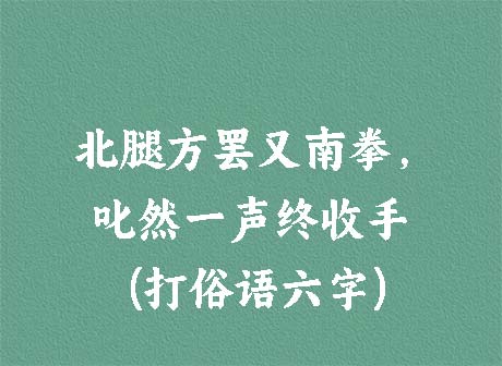 谜面:北腿方罢又南拳,叱然一声终收手。 (打俗语六字)