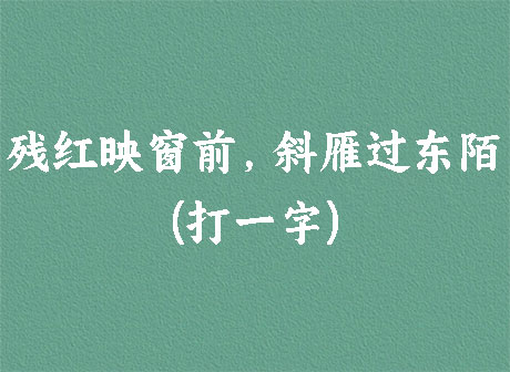 谜面:残红映窗前,斜雁过东陌。 (打一字)